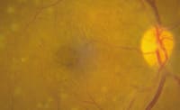 The American Diabetes Association estimates that 18.2 million people in the United States (6.3% of the population) have diabetes. Diabetes is the leading cause of blindness among adults 20 to 74 years old, and diabetic retinopathy causes 12000 to 24000 new cases of blindness each year.1 Diabetic macular edema (DME; Figure 1) and the sequelae of proliferative diabetic retinopathy (PDR; Figure 2) are the main reasons for vision loss.