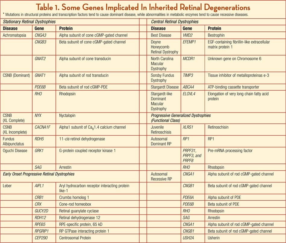 Classification of retinal dystrophies can be confusing because they are both clinically and genetically heterogeneous.2,3 There are several disease classification schemas and we present them as (1) progressive vs stationary, and (2) central (macular) dystrophies vs generalized (see Table 1).