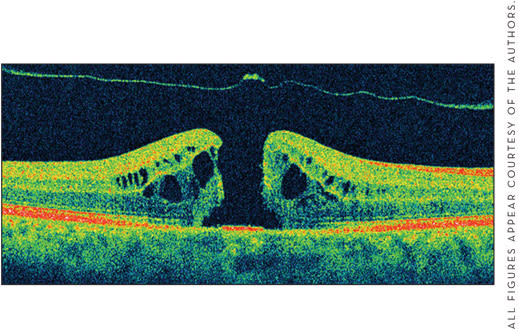 The most onerous postoperative aspect for the patient remains the need for face-down positioning. In the 1990s, face-down positioning was recommended for at least 2 weeks, but a trend toward a shorter interval seems still to yield similar outcomes.6,7 Surgical success rates include anatomic success rates well into the mid-90% range and visual improvement in about 80%. Optical coherence tomography (OCT) has advanced the diagnostic accuracy (Figure 2) of this condition,8 as there are many conditions mimicking the clinical appearance of macular holes.9