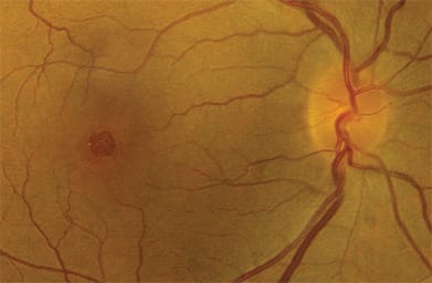 Figure 1. Macular hole in patient with history of visual loss for 3 months in the right eye.