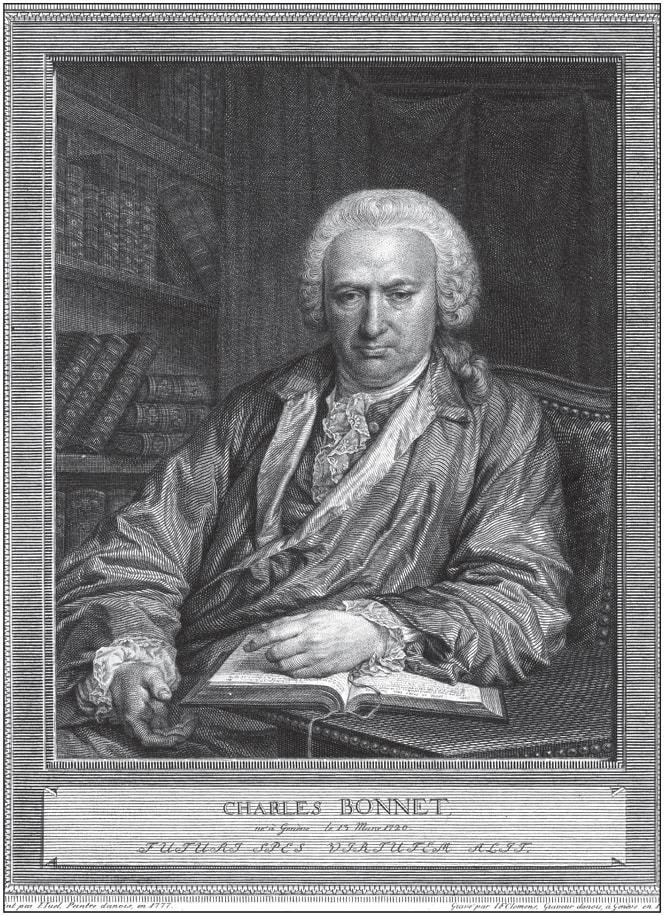 Georges de Morsier coined the eponym in 1936 in honor of Charles Bonnet, an 18th century Swiss naturalist and philosopher who, in 1769, described complex visual hallucinations experienced by his cognitively sound 89-year-old grandfather, who had developed visual impairment subsequent to bilateral cataracts. These hallucinations were described as silent visions of people, birds, carriages, and buildings varying in size, shape, and place. Bonnet's grandfather was otherwise healthy, maintained intact cognition, and was fully aware that the hallucinations were "fictions" of his mind.4 Bonnet would himself go on to develop deteriorating vision and similar symptoms later in life.5