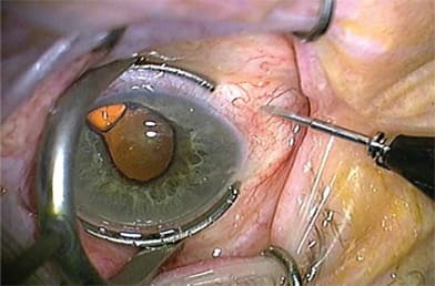 Dr. Boyer: If you operate on an eye that has undergone recent cataract surgery, the tangential pressure needed to put the cannula in can open up the cataract wound. Therefore, I might put a stitch in the cataract wound that I can remove at the end of the case. What do you do Dr. Murray?