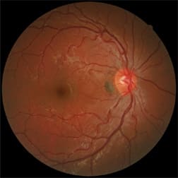 The fine gradation provides clear and detailed display of the entire fundus image from the light optic disc to a darkened disease area. With noise greatly reduced, the system offers retinal photography with minimum flash exposure, allowing quick and efficient fundus photography of both eyes, thereby minimizing patient discomfort.