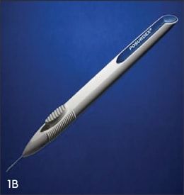The Posurdex implant (Figures 1A, 1B, and 1C) is a sustained-delivery formulation of dexamethasone. This is a biodegradable implant with a polylactic glycolic acid polymer as the delivery vehicle, which undergoes hydrolysis with degradation to lactic acid and glycolic acid, 2 naturally occurring metabolic byproducts that are then further broken down to water and carbon dioxide. Two different dexamethasone dose (350 μg and 700 μg) implants were evaluated in a 6-month, phase 2, multicenter, randomized clinical trial in 315 patients with refractory, persistent macular edema due to various causes and showed positive results.24 At 6 months, 18.1% of patients in the 700-μg group had BVCA improved by 15 letters or more, compared to 14.6% of patients in the 350-μg group and 7.6% of patients in the observation group.