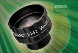■ The H-R Wide Field Laser Lens is a panretinal lens for diagnosis and laser treatment. Its high-resolution imaging, coupled with an extremely wide field capability, provides detailed views for diagnostic and laser work.
