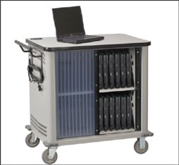 ■ Ancom offers a mobile storage cart specifically designed to hold and charge up to 32 laptop computers, or a number of other peripheral computer devices. The cart permits secure storage, convenient charging, and easy transport of laptops and other peripherals throughout any office, clinic, or campus.