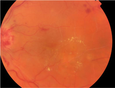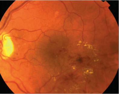 Figure 1. Color photographs showing a clinically significant macular edema.