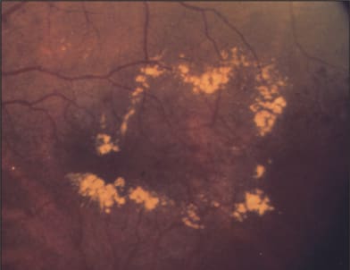 The management of diabetic retinopathy remains a challenge. Diabetic macular edema (Figure 1) is a major cause of vision loss. The Early Treatment of Diabetic Retinopathy Study (ETDRS) showed a 50% reduction in the risk of moderate vision loss (15 or more letters) at three years with focal laser photocoagulation.1 However, only 16% of patients with a baseline vision of 20/40 or worse improved by 15 letters at three years. The low rate of visual improvement has fueled interest in other treatment modalities.