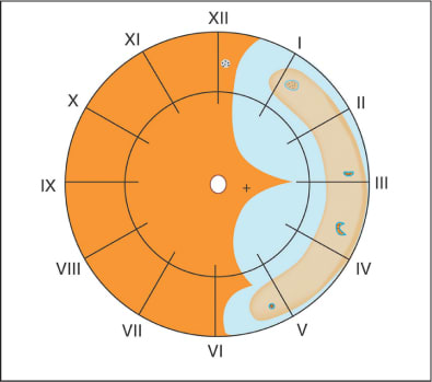 Figure 5. A circumferential buckle was placed after cryo application to the break at 1 o'clock and the three possible breaks 22 months after the initial examination.