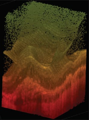 One can then perform further analysis of the relationship of the area of adhesion to a CNV membrane in eyes with exudative AMD. Careful scanning allows determination of the location and extent of the AMD lesion in relationship to the CNV membrane or residual of CNV, including scar. These instruments allow two-dimensional visualization of the pathology and also three-dimensional visualization (Figure 1).