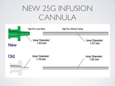 Figure 2. Note the larger internal diameter of the 25+ cannula as compared with the 25-gauge cannula.