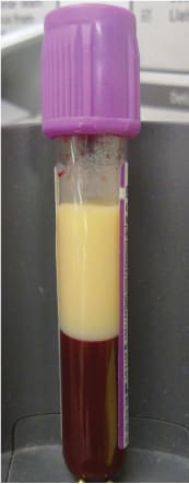 Figure 1. In hyperlipidemia, a variety of dyslipidemia, abnormally high lipid levels can separate to the top of blood samples.