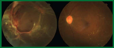 Figure 1. Traction and rhegmatogenous retinal detachment before and after 23-gauge surgery.