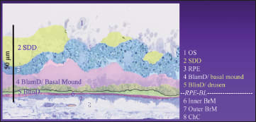 Figure 15. A soft, druse-like materials can be found in several compartments of the retina.