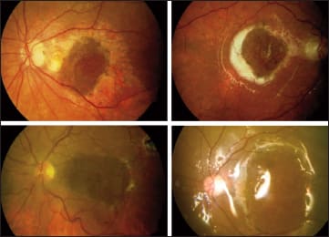 Figure 3. In some cases, choroidal patch translocation was necessary (images run from upper left to lower right).