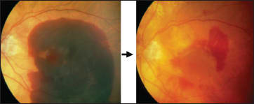 Figure 8. In this patient, subretinal drainage after rTPA injection resulted in postop VA of 20/200 from hand motions.