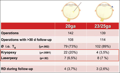 Figure 9. Success and complication rates were largely similar between 20- and 23-gauge vitrectomy.