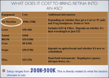 Figure 17. ASC setup costs exceed $200,000, with the majority going toward the purchase of a vitrectomy machine.