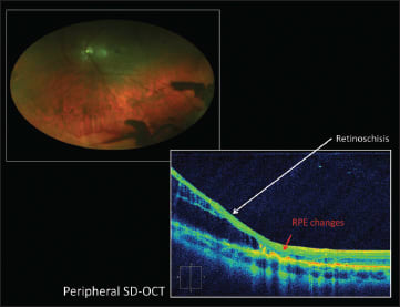 Figure 5. On fundus photography, this case resembled schisis or a retinal detachment. SD-OCT revealed schisis.