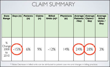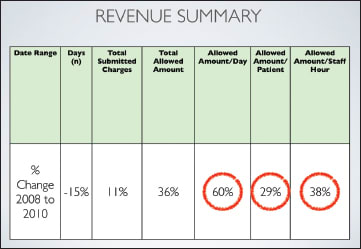 Figure 20. Key increases were seen in allowed amounts per day, per patient, and per staff hour.