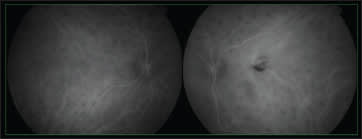 Figure 13. Indocyanine green angiography revealed birdshot chorioretinopathy; the patient tested positive for HLA A29.