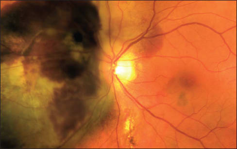 Figure 1. Peripapillary choroidal melanoma associated with subretinal hemorrhage.
