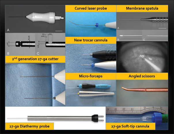 Synergetics) have been developed to expand the surgical indications of 27-g vitrectomy for challenging diabetic vitrectomies and submacular injections.
