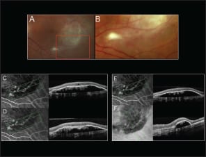 Figure 5. A case of polyps in neovascular tissue associated with a choroidal nevus.