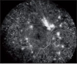 Figure 1. Fluorescein angiography of diabetic retinopathy obtained with the Spectralis Non-Contact Ultra-Widefield imaging. The moveable camera head of the Spectralis further extends the reach out into the far periphery.