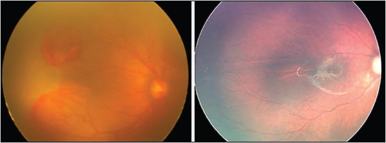 Figure 3. Aggressive posterior ROP at week 35 of gestational age; patient received intravitreal bevacizumab. At week 65 of GA, continued vascularization of the retina without laser.
