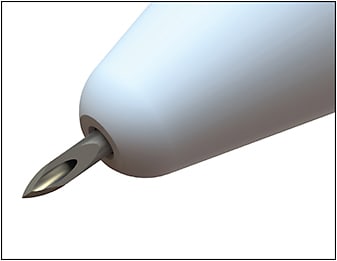 The development of a minimally invasive method of administering drug to the eye through the SCS using a proprietary microinjector (Figures 2 and 3) is a novel approach for managing posterior-segment disease. The microinjector is a syringe with a needle that is approximately 1 mm in length.