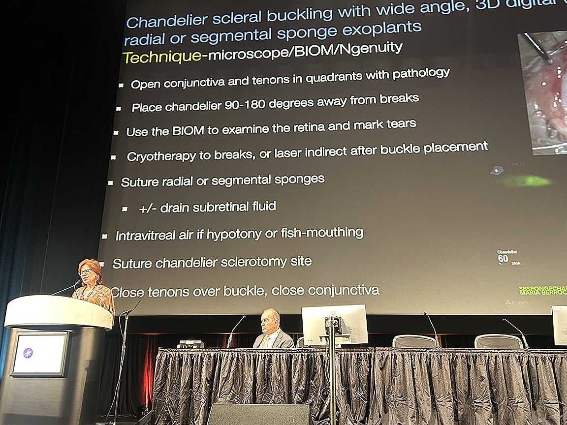 Figure 1. Dr. Berrocal describes the steps of the chandelier scleral buckle procedure.