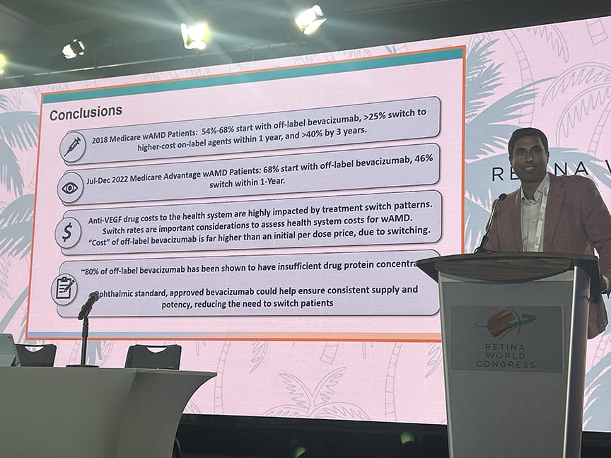 Figure 4. Robin A. Vora, MD, disucsses the impact start-and-switch decisions on healthcare costs at the Retina World Congress in Fort Lauderdale, Florida.