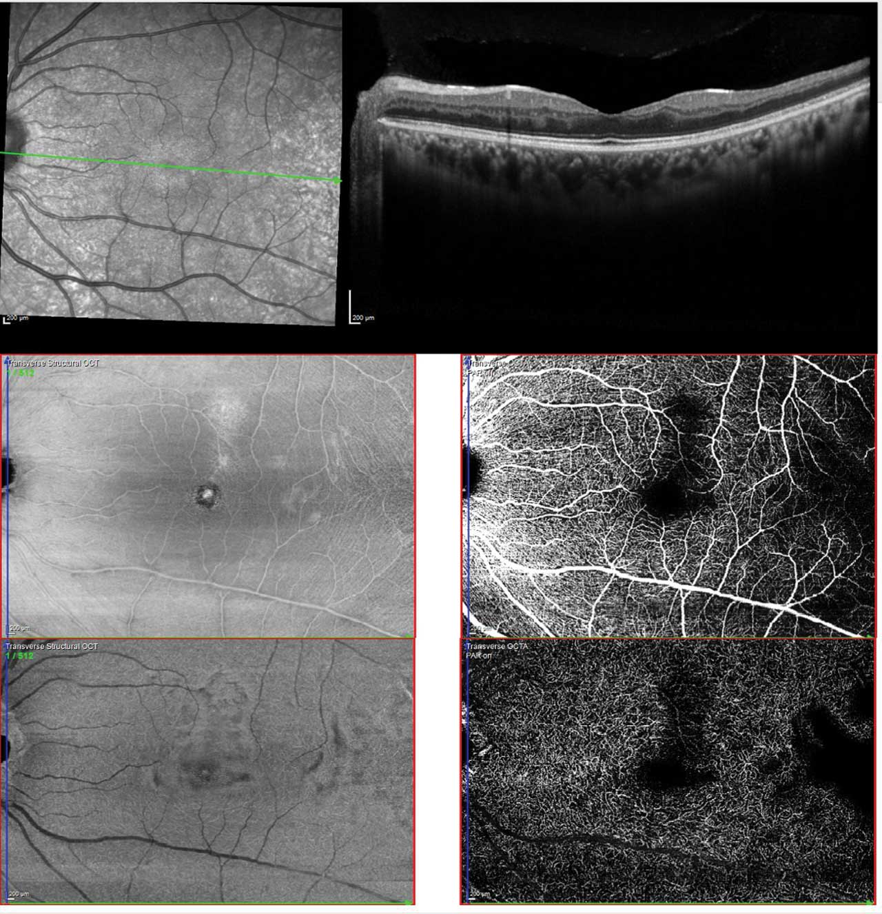Screening remains exam first, but multimodal imaging now improves detection and monitoring (Figure 1).10 SD-OCT helps identify characteristic macular thinning or ischemic changes that may be clinically subtle.11 Ultrawidefield (UWF) color imaging expands peripheral assessment, and OCTA—ideally widefield when available—noninvasively quantifies macular/peripheral perfusion and correlates with disease stage, supporting earlier detection and objective follow-up (Figure 2).12 Fluorescein angiography is reserved for cases where treatment planning (eg, laser) requires defining peripheral nonperfusion or neovascularization.