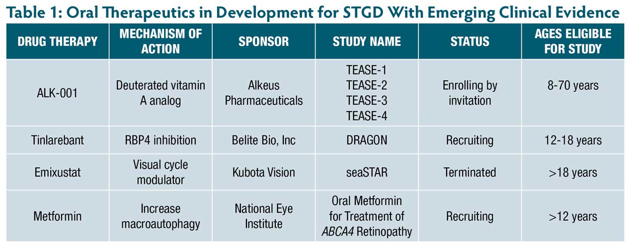 Oral Therapies Targeting the Retinoid Cycle in STGD
