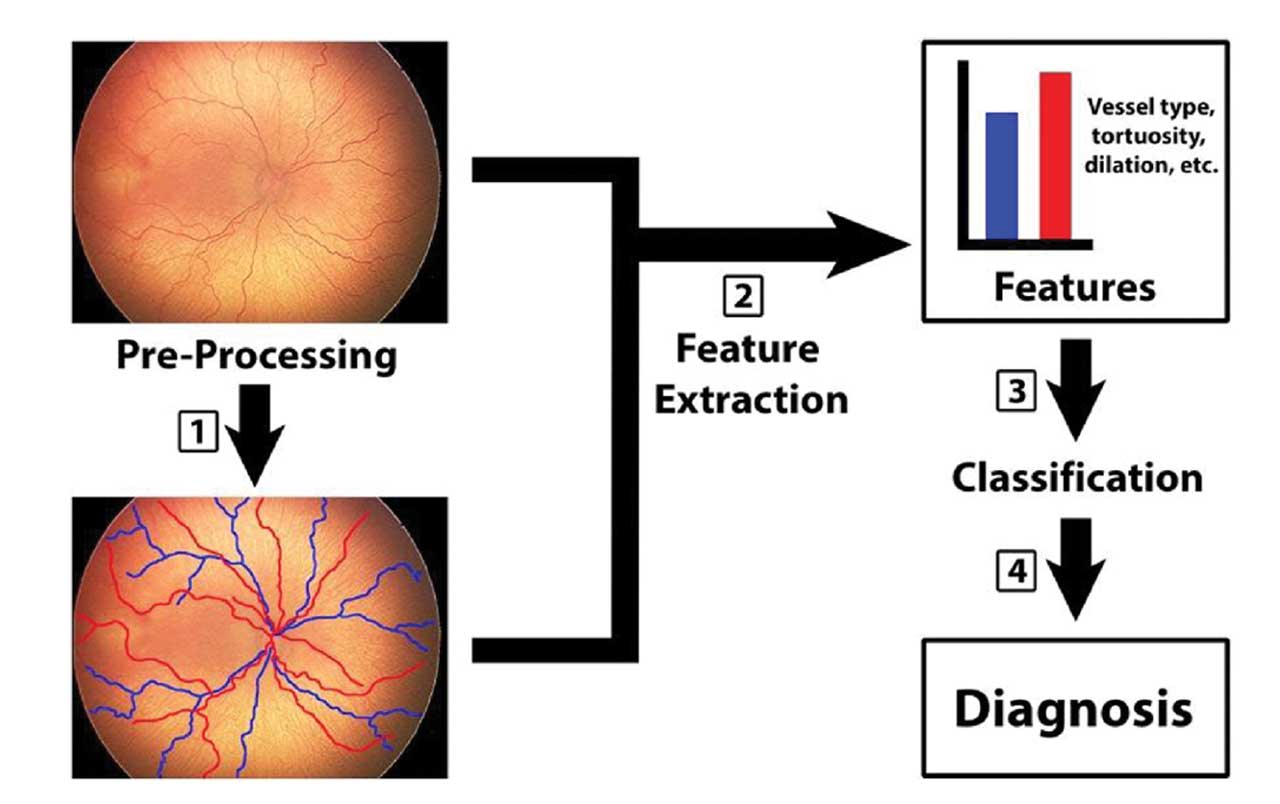 Early computer-based systems for ROP diagnosis—such as ROPTool, Retinal Image multiScale Analysis, Vessel Map, and Computer Assisted Image Analysis of the Retina—used algorithms to semiautomatically measure blood vessel tortuosity and dilation.7 However, unlike current machine learning (ML) and deep learning (DL) tools, these systems did not use adaptive computer learning abilities. Figure 1 depicts the process of ML in ROP.