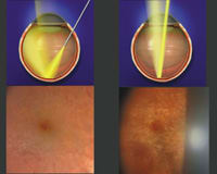 Figure 1. With a slit lamp light illuminating the macula at an angle of 5°, right, the great majority of reflected light reaches the surgeon's eye. |