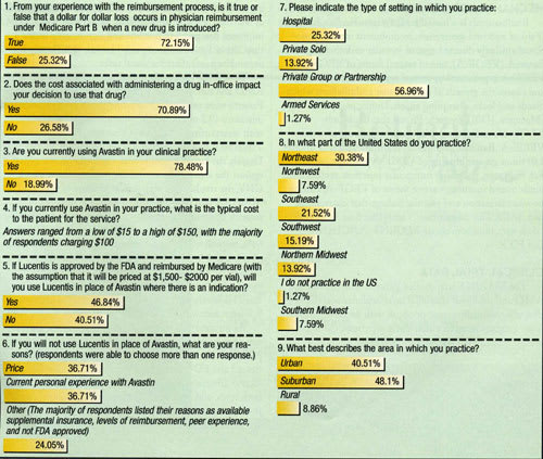 Dramatic changes in practice patterns will likely occur with Food and Drug Administration approval of ranibizumab. In anticipation of these changes, the editors of Retinal Physician thought it would be valuable to get a quick snapshot of what our readers' viewpoints are with regard to the use of ranibizumab and bevacizumab.