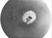 This case study describes effective treatment of an occult subretinal membrane due to exudative AMD. The patient was treated using standard laser parameters for the specific lesion and patient characteristics. Minor changes in laser treatment parameters are sometimes required for lesions of different size and for variations in retinal pigmentation due to racial variations. It should be noted that this patient presented prior to the availability of any anti-VEGF therapies such as pegaptanib sodium (Macugen, OSI), bevacizumab (Avastin, Genentech), and ranibizumab (Lucentis, Genentech). As well, PDT with verteporfin was an uninsured and expensive therapy for this lesion type.