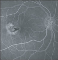 The prognosis for the retention of central vision may be good after the hemorrhages resolve, unless a focal area of chorioretinal atrophy or CNV develops.39,42 In the case of chorioretinal atrophy, the degeneration usually starts from the periphery of the lesion.39 CNV associated with lacquer crack is in general small and found in the macular region.39,43-45 If the CNV is accompanied by hemorrhage, when blood resorbs, a mild RPE proliferation may be seen; this pattern may obscure the CNV itself.