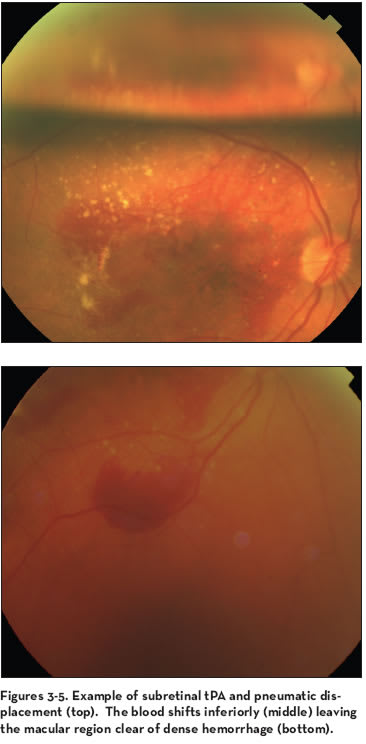 Obviously, case selection will be critical in determining which patients may benefit from surgical intervention and pneumatic displacement of hemorrhage. Patients with new onset, dense hemorrhages, preferably those macular bleeds that are less than 1 week old are the best candidates for visual improvement.