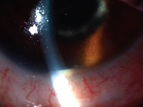 Figure 1. Keratic precipitates and a small layered hypopyon.