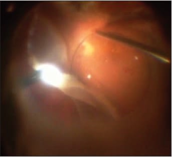 Figure 4. A retinal tear edge can be seen in white, and it has been pushed posteriorly by air.
