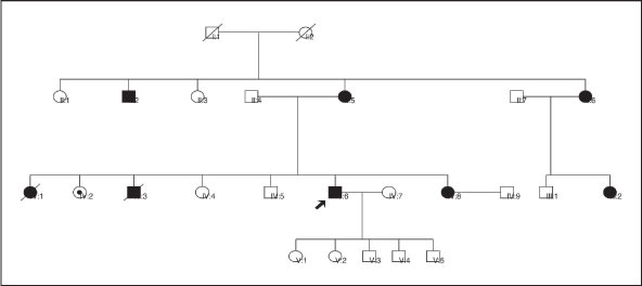 Figure 1. Pedigree of the patient's family (Note: Patient has not yet given consent for screening of his children.)