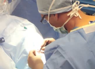 Dr. Gupta prepares for his next patient. Note that all aspects of the machine and instruments are accessible by the surgeon and by the assistant, maximizing efficiency in the OR.