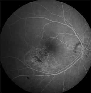 Figure 1. Fundus photograph of the right eye shows inferotemporal BRVO.