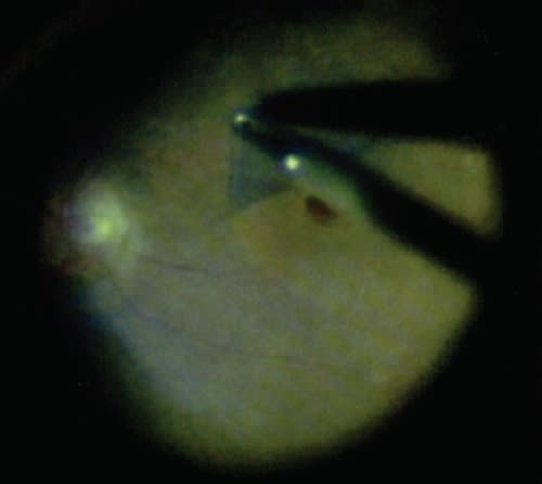 Triamcinolone's use in visualization was discovered largely by accident; its water-insolubility caused it to be retained for longer periods in the vitreous, which would then have augmented visualization in postoperative examinations.6 Since then, triamcinolone has been used in anterior- segment surgery and pars plana vitrectomy to visualize the vitreous and minimize or eliminate loss of vitreous. More recently, it has been applied to the ILM for peeling during macular hole surgery (Figure 2).7,16