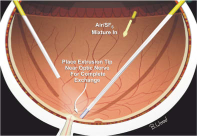 The conventional explanation of the role of surgical steps in surgical hole closure is incomplete and, to an extent, probably incorrect. It is often stated that the role of PVD creation is to eliminate vitreous traction on the macula, but in fact the posterior vitreous is usually attached to the optic nerve head, nasal and midperipheral retina, but not attached to the macula or retina within the temporal arcades. Careful PVD creation reduces the likelihood of inferior retinal breaks caused by interaction of the bubble with residual vitreous — similar to what may occur with pneumatic retinopexy. The role of core vitrectomy is to enable exchange of vitreous for a large gas bubble and to ensure that a thin layer of vitreous does not prevent contact of the gas bubble with the hole.9,10