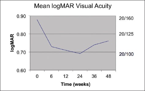 Figure 7. Visual acuity improved from 20/160 to 20/125 at 48 weeks.