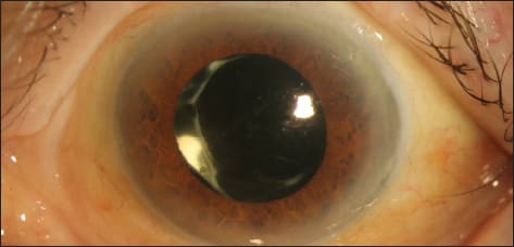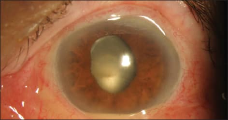 Figure 9. Four days after being injected with ranibizumab, this patient presented with a visual acuity of hand motions.